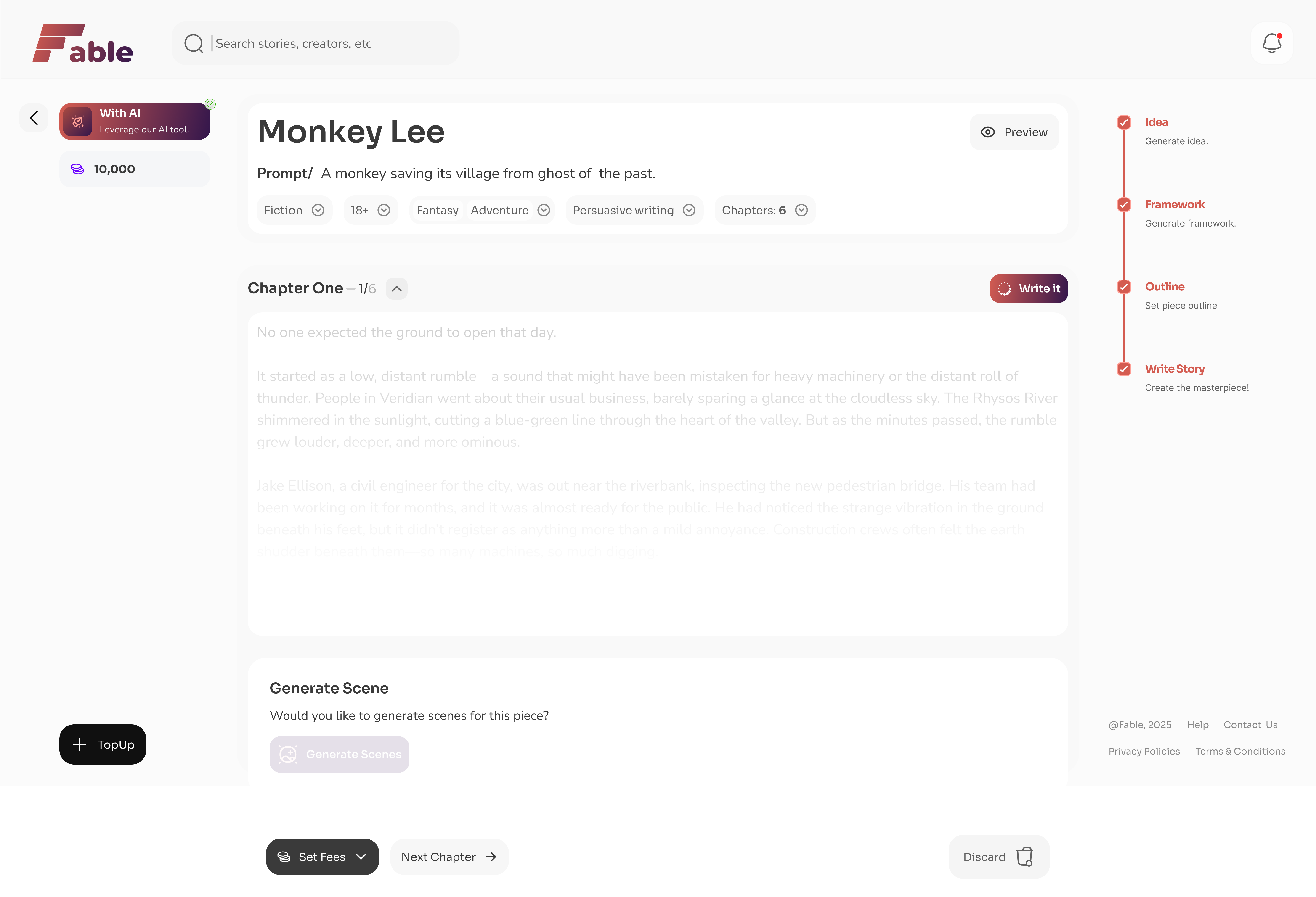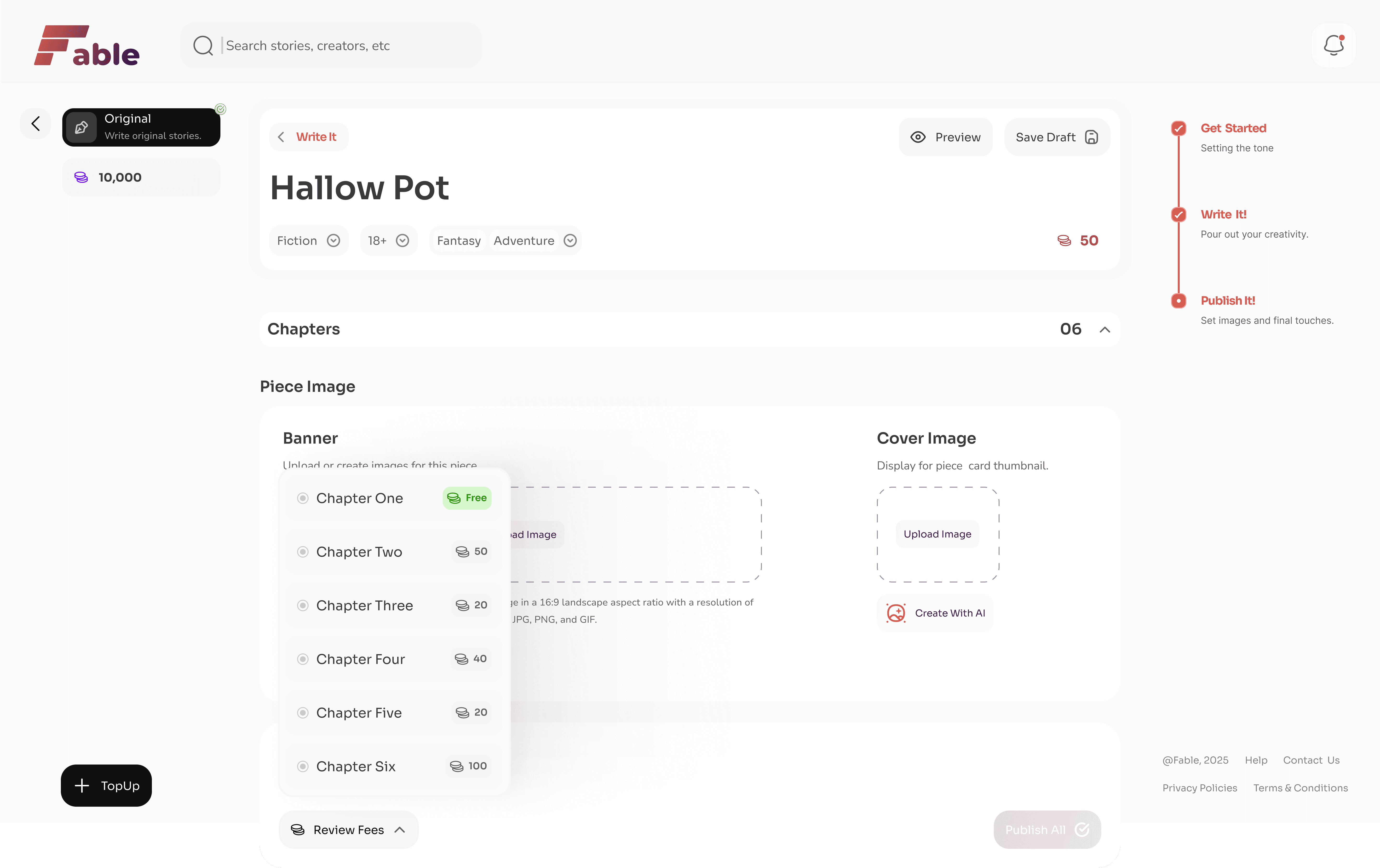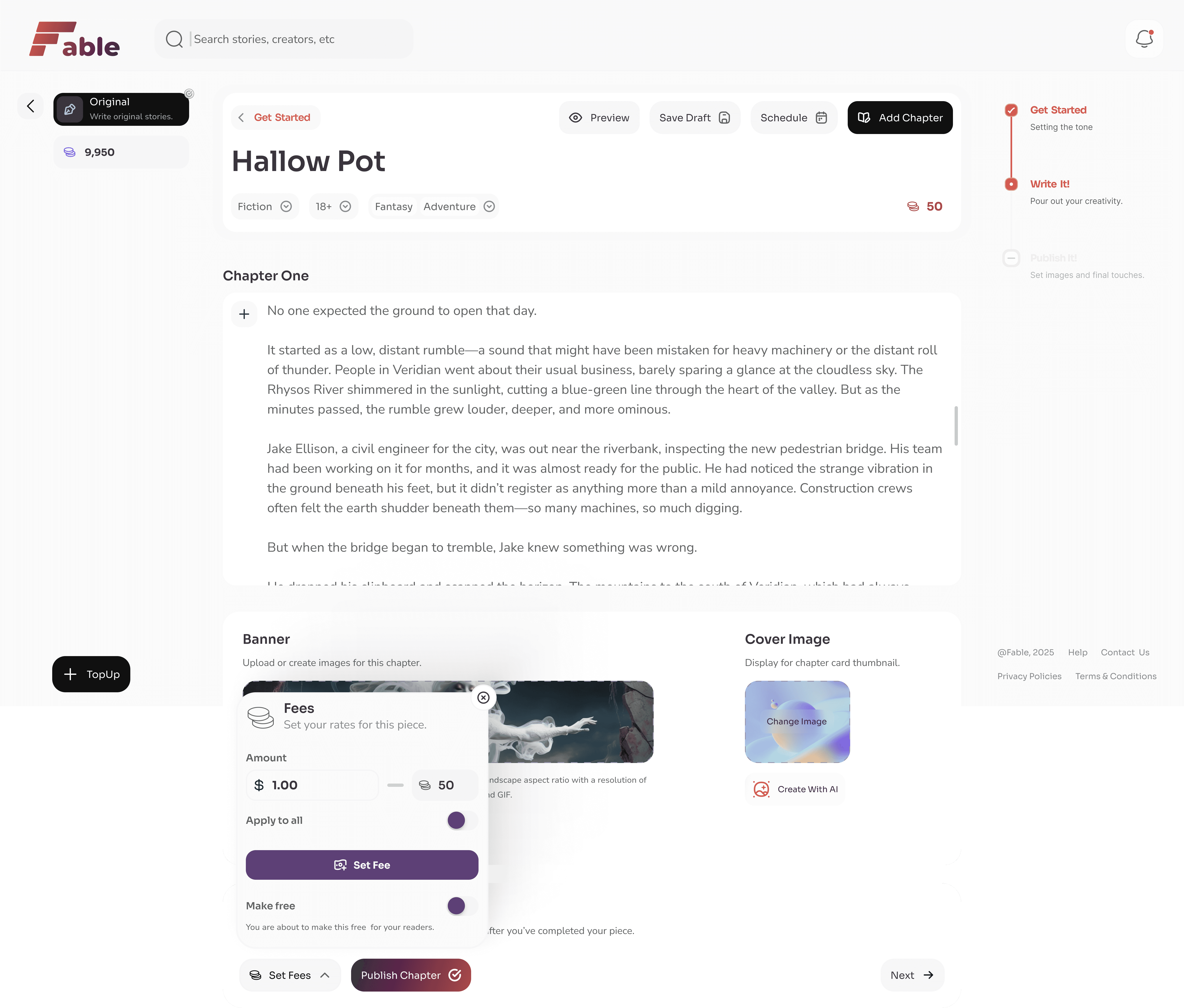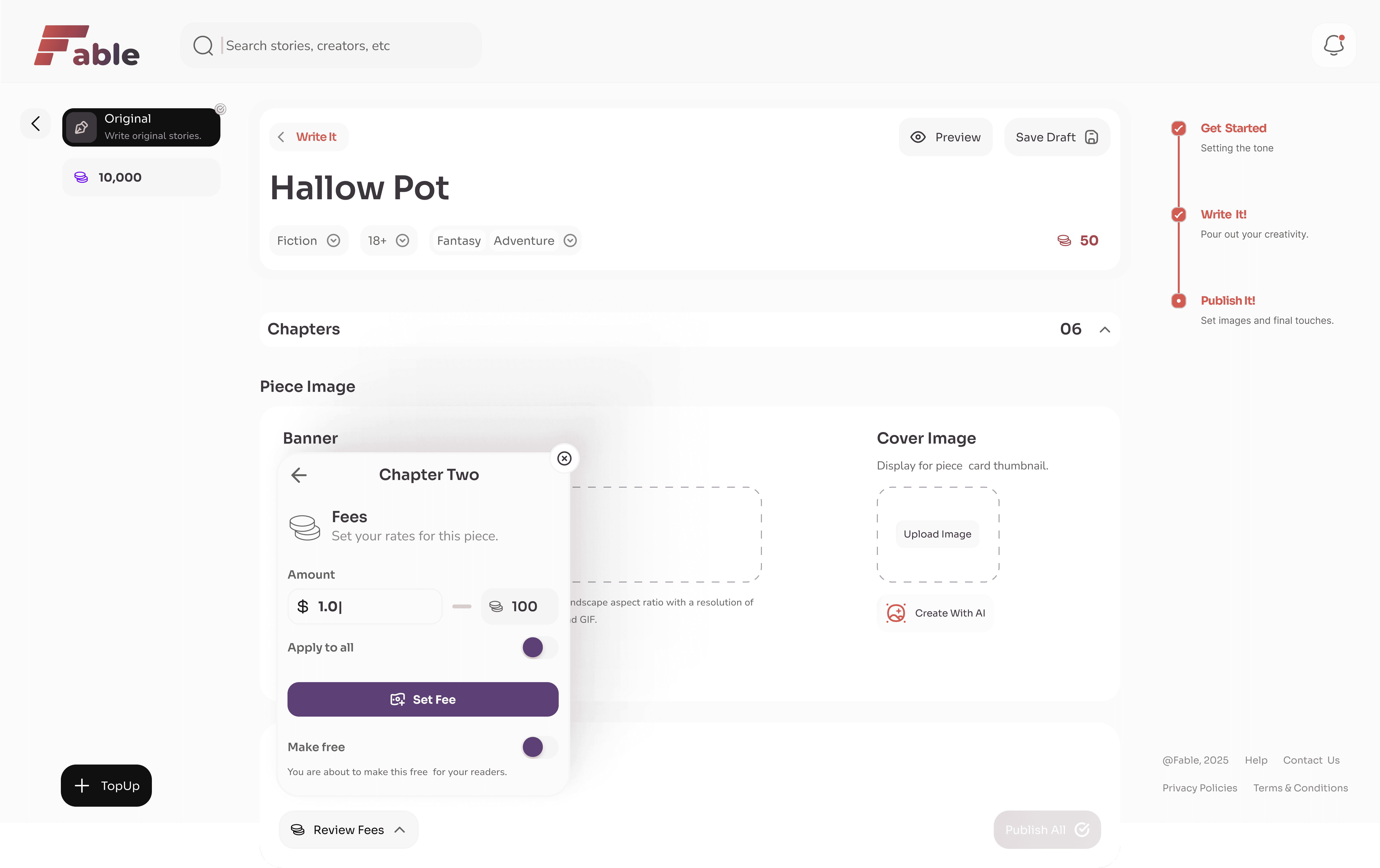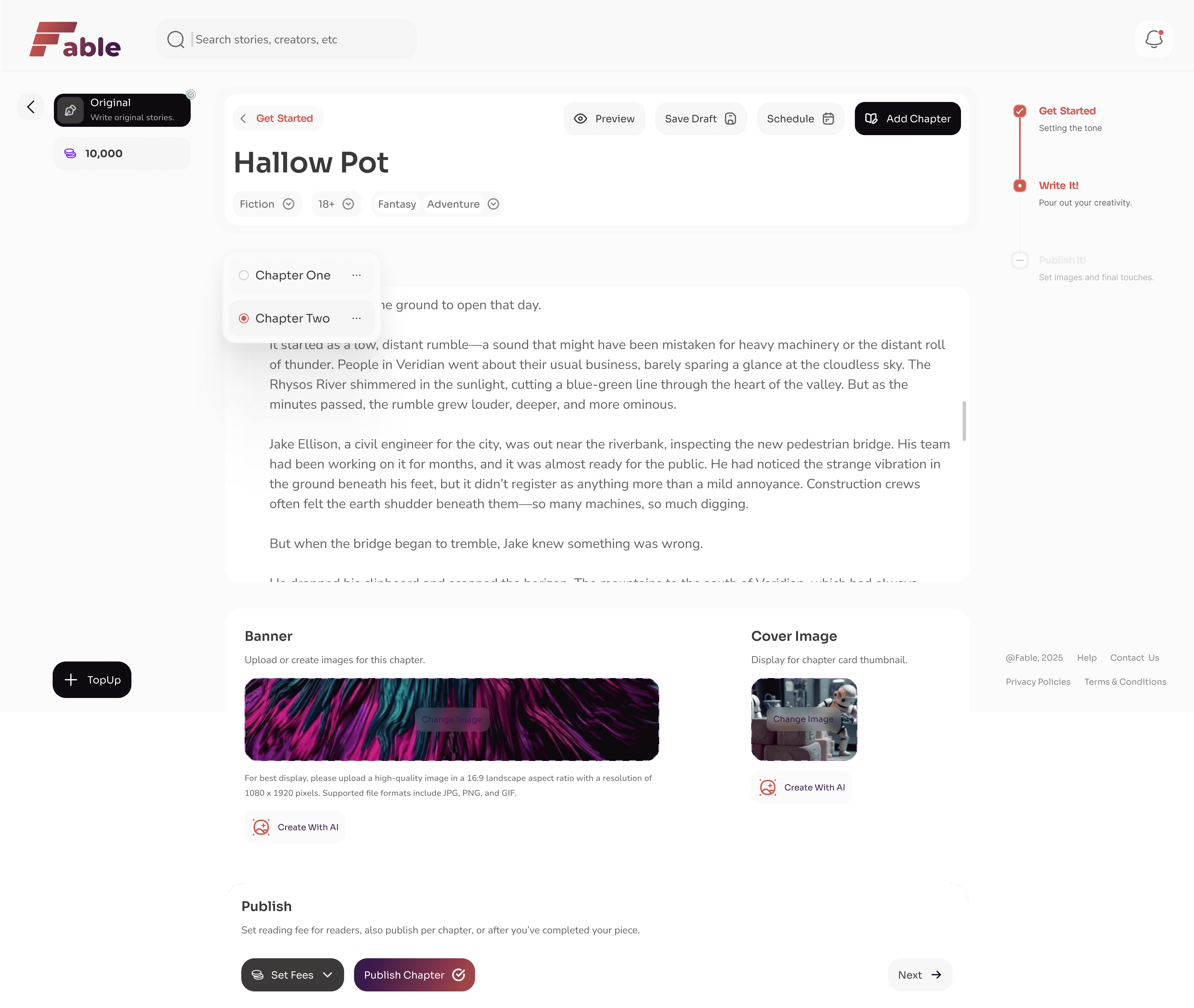 With Fable, creators can build interactive storytelling spaces where readers engage with chapters, unlock exclusive content, and participate in live story events creating a richer, more immersive storytelling experience