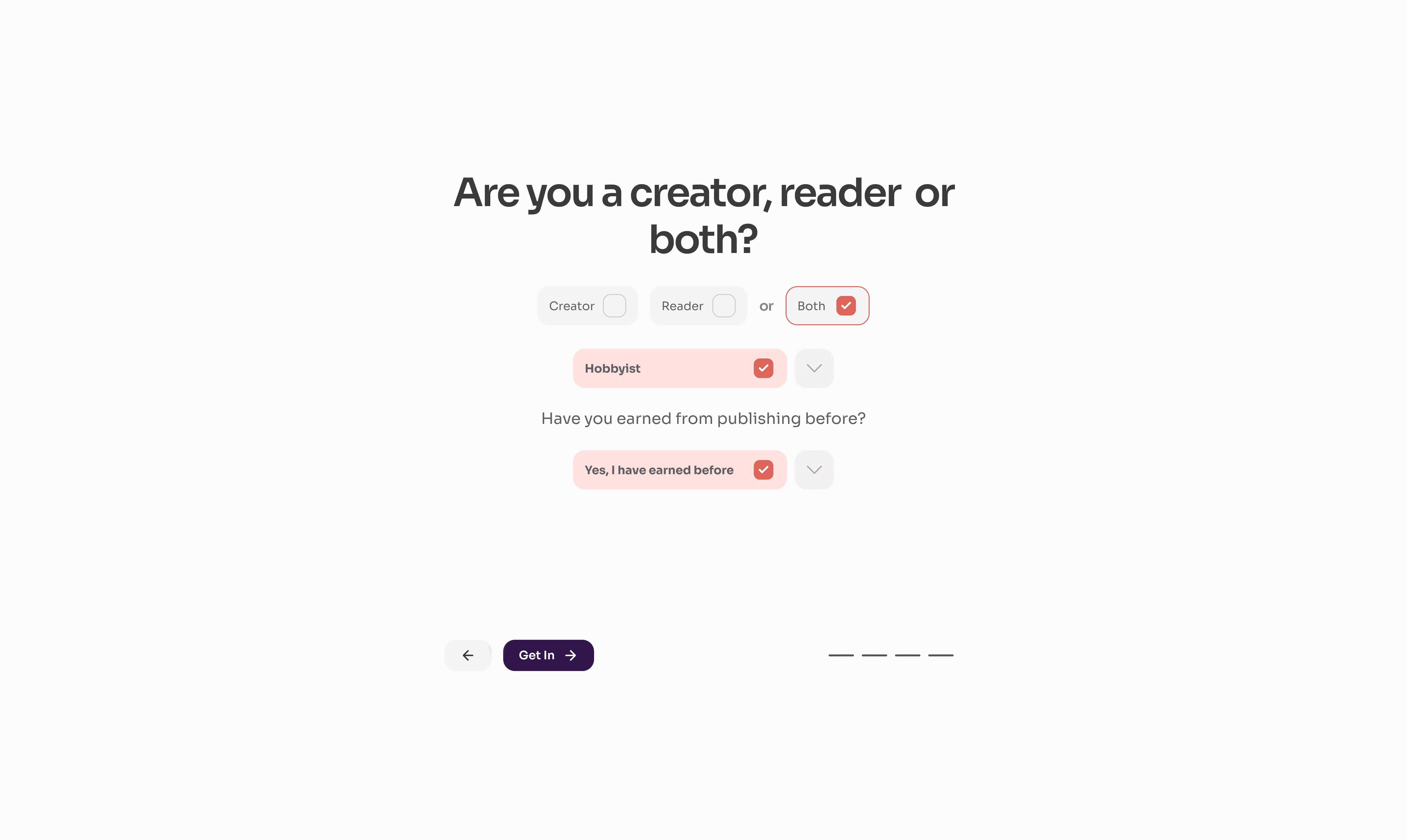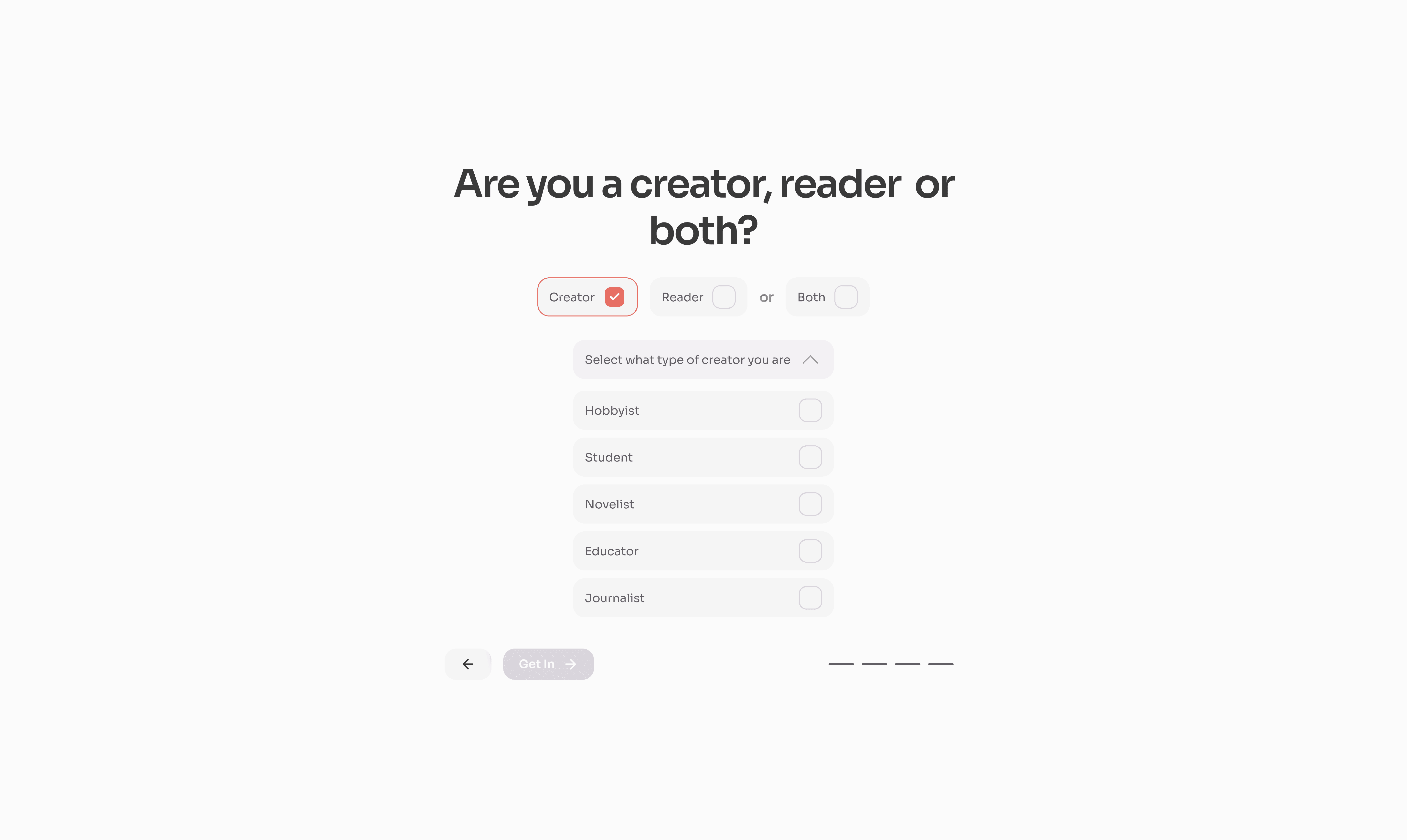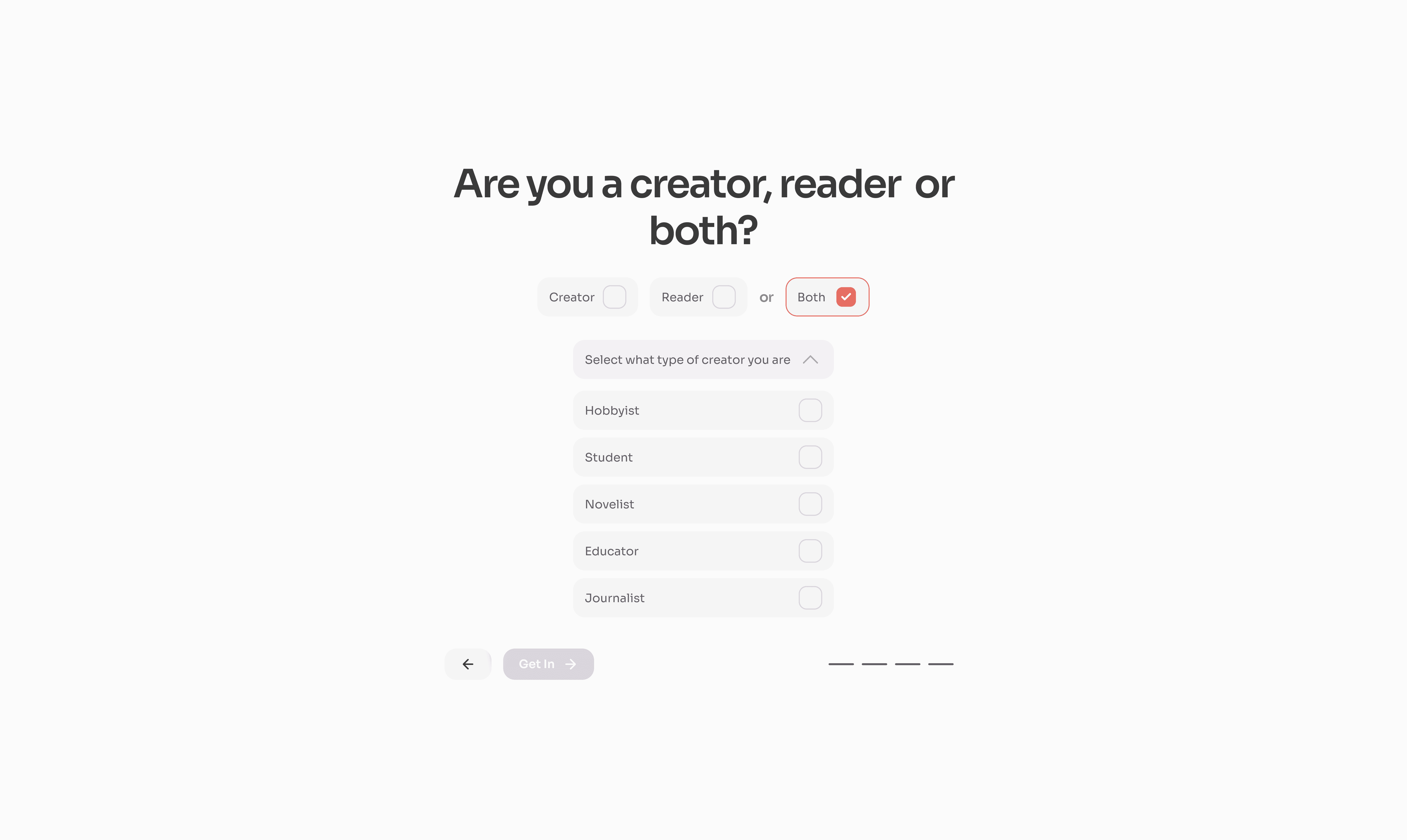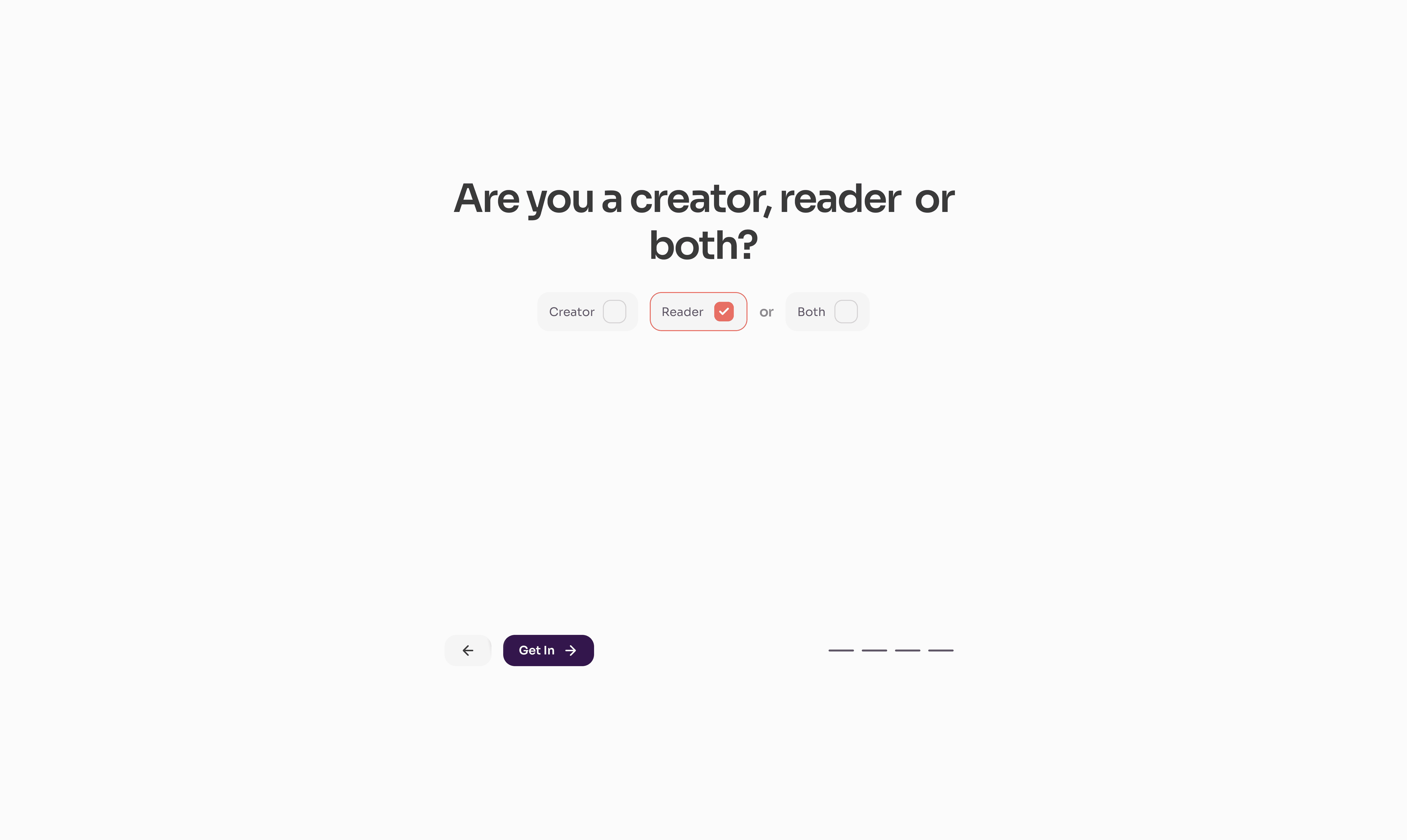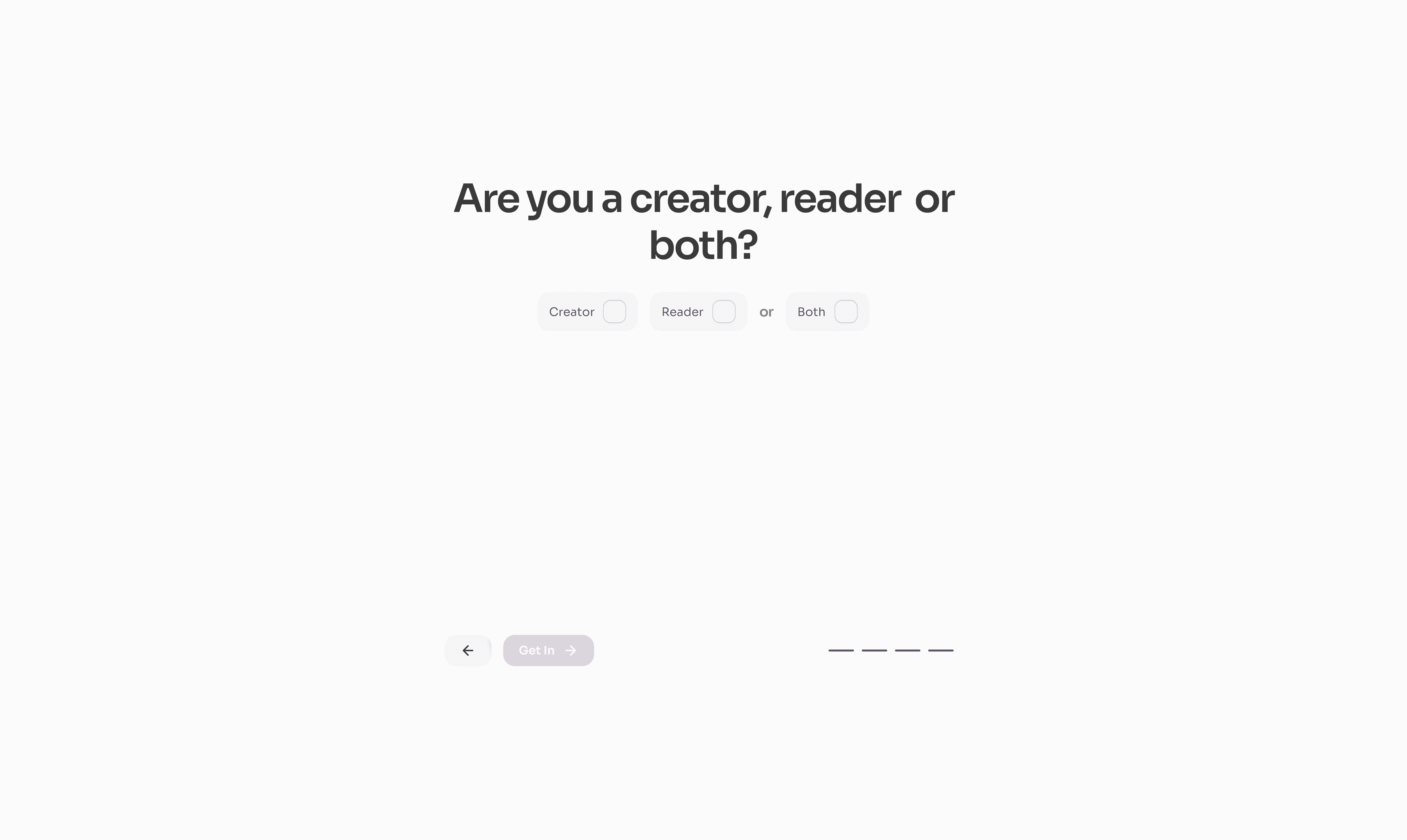 This follows immediately after the first three initial steps, here users get to decide what they want to be on Fable, be it a creator, reader or if they are both.