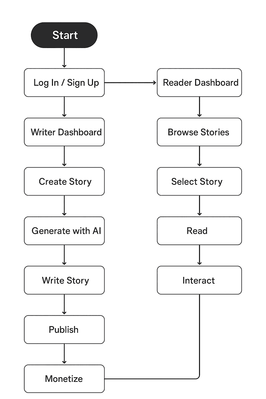 After the rise of AI-generated content, we noticed a growing desire for more authentic and interactive storytelling. Traditional writing platforms felt static offering limited collaboration, minimal reader engagement, and few opportunities for creators to earn. Seeing this gap, we set out to create a space where stories could evolve dynamically, blending human creativity, community input, and technology to make storytelling more immersive and rewarding.
