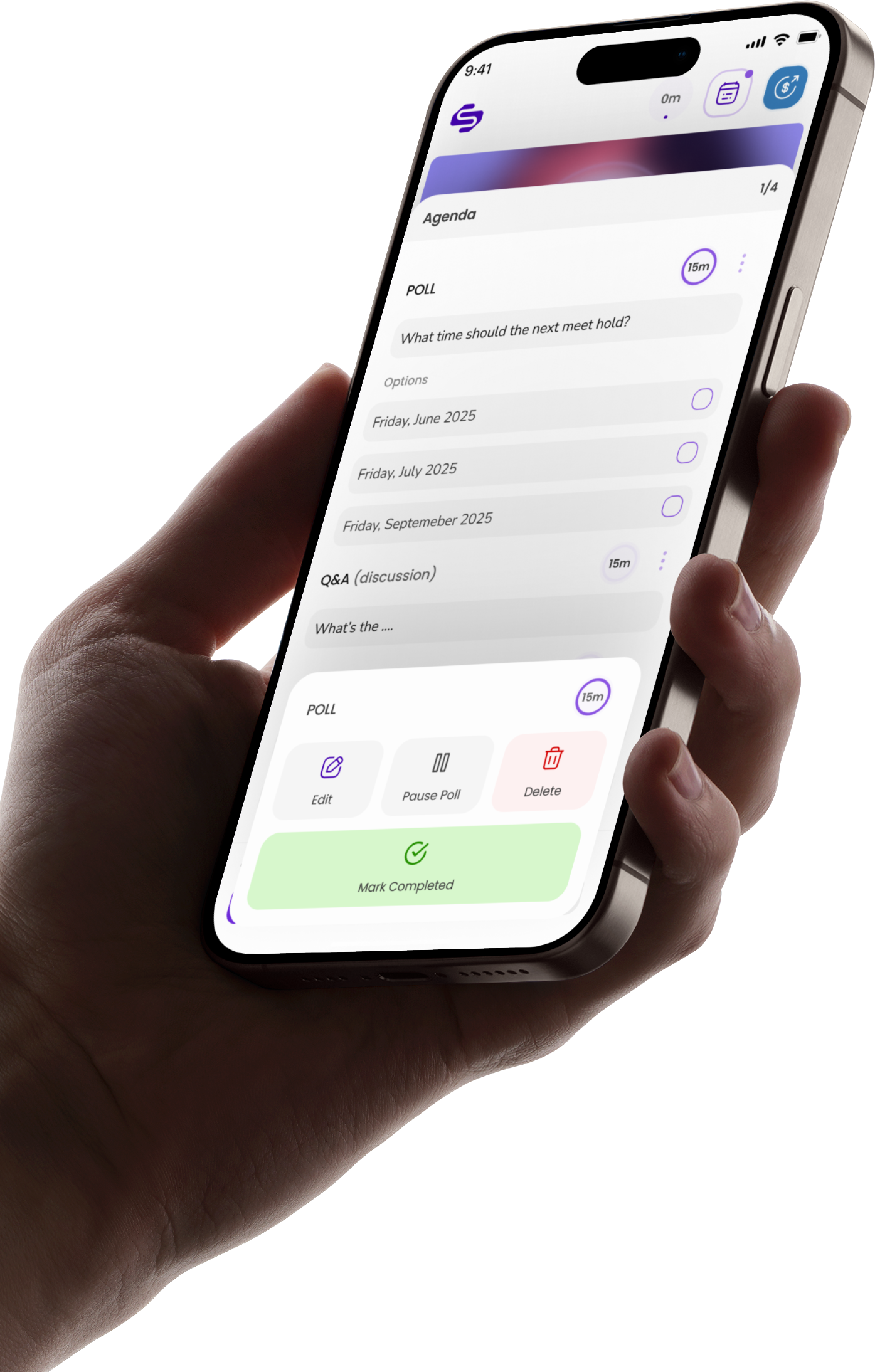 agenda completion in meetings improved cleaner information architecture and persistent, glanceable controls for polls, hand-raises, and screen sharing cut confusion and keep every session on track.